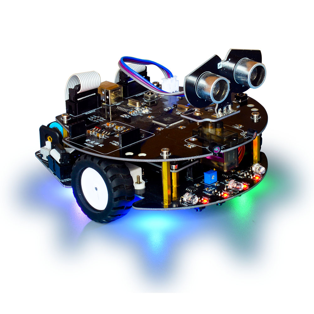 內置紅外線傳感器,可實現黑色跑道自動行駛。用戶可以自定義軌跡路徑,通過編程實現沿軌跡運行。