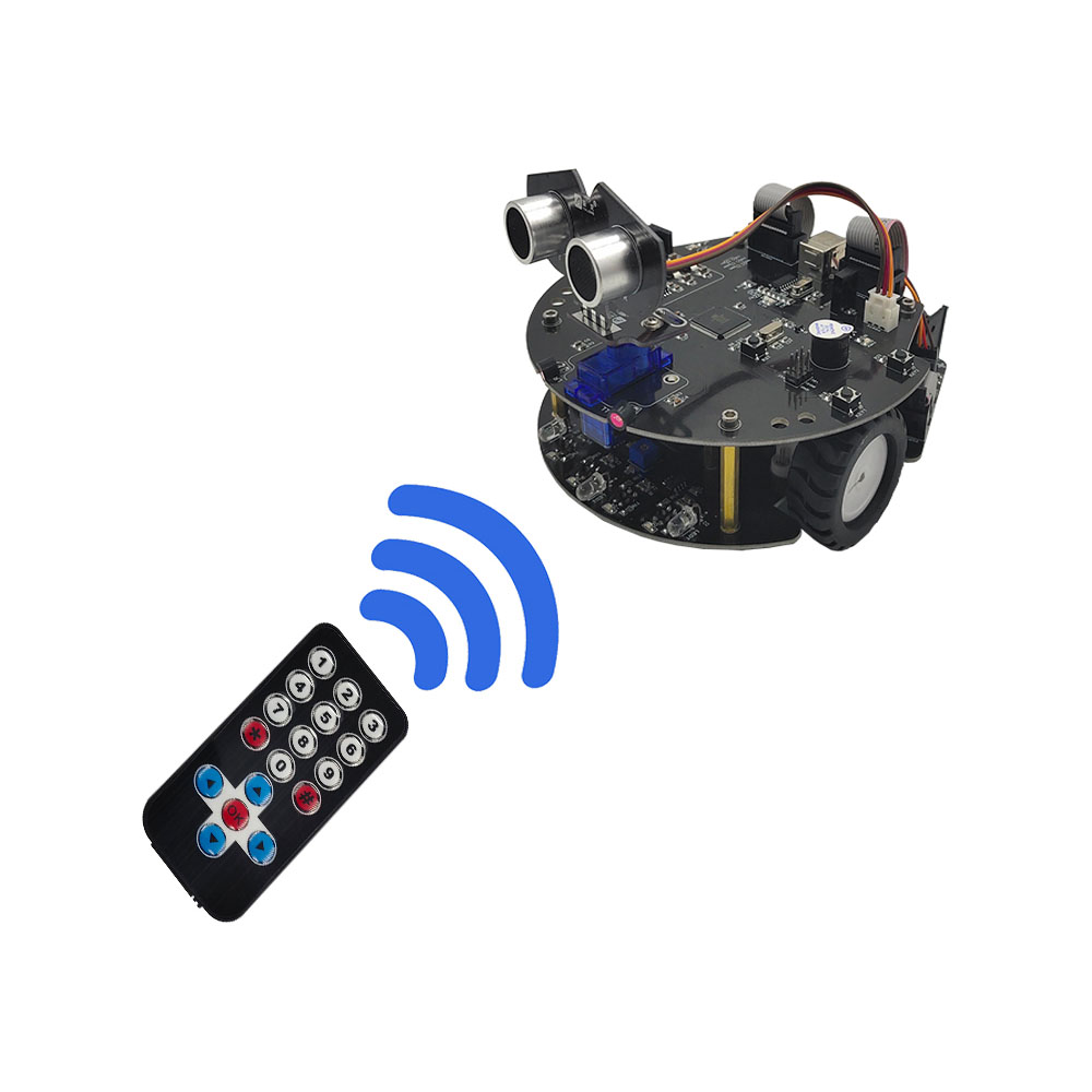 內嵌紅外線遙控模塊,通過遙控器發出紅外信號與星球車通信,控制星球車運動方向和運動速度,切換不同行為模式。