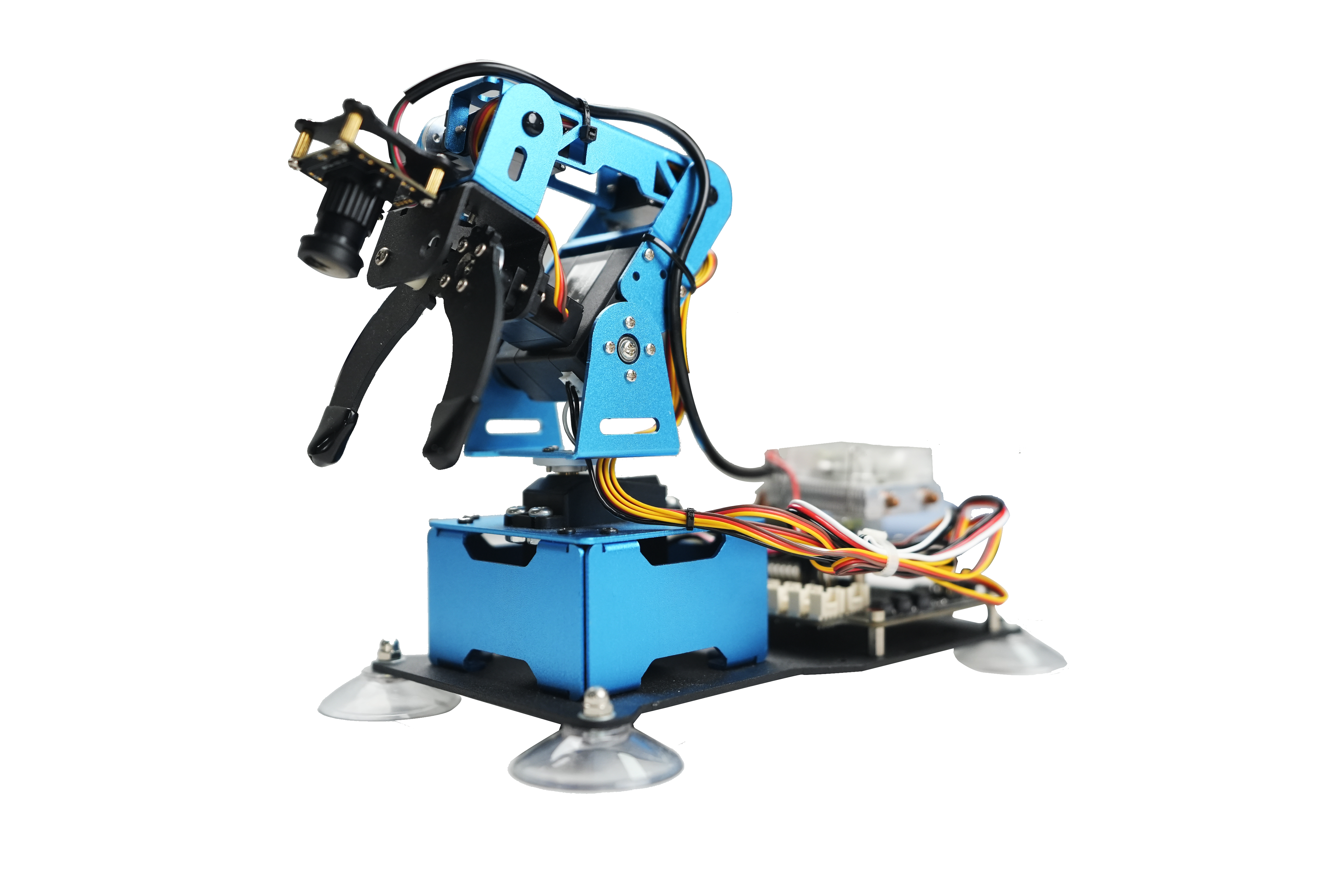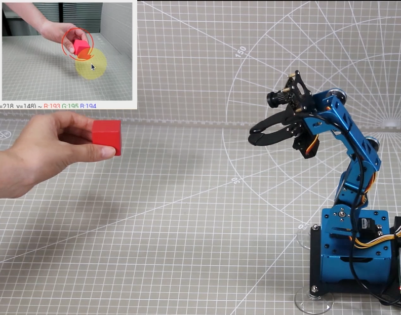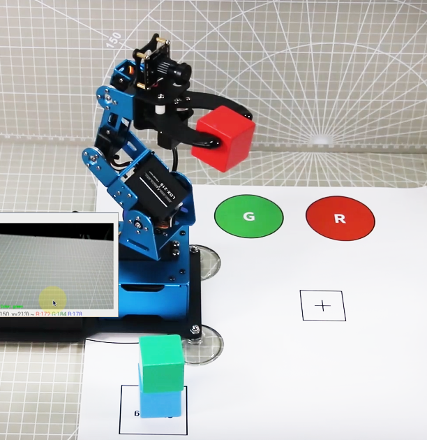 通過構(gòu)建場景與(3)-(7)中AI視覺、AI語音、機(jī)器人運(yùn)動學(xué)、ROS激光雷達(dá)、全系列傳感模塊等相結(jié)構(gòu),實(shí)現(xiàn)場景、多傳感器器綜合實(shí)驗(yàn)。例如,a)顏色分揀:通過對目標(biāo)色塊進(jìn)行顏色識別和坐標(biāo)定位,可以輕松控制機(jī)械臂實(shí)現(xiàn)顏色識別、抓取、分揀。b)智能碼垛:通過對目標(biāo)物品進(jìn)行識別和定位,可以輕松實(shí)現(xiàn)色塊碼垛的功能。c)目標(biāo)追蹤:通過對目標(biāo)色塊進(jìn)行視覺定位,利用機(jī)械臂的逆運(yùn)動學(xué)算法,可以更好的對目標(biāo)色塊進(jìn)行捕捉和追蹤。