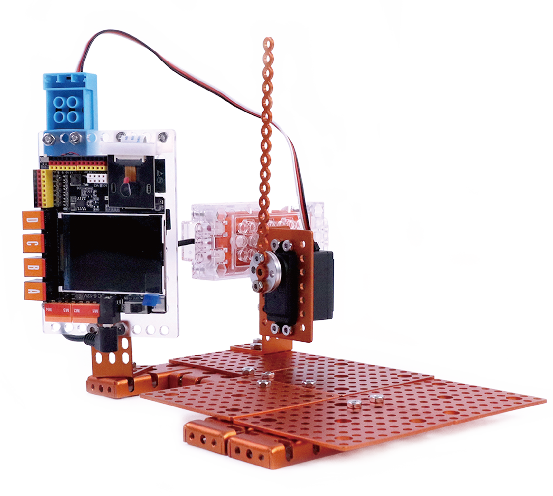 AI智能工廠套裝是一款基于運用人工智能技術實現圖像識別功能的案例型演示套裝。該套裝包含3個形態,分別是人工智能道閘,人工智能履帶運輸車,人工智能分揀機,總體模擬構建了AI智能工廠常用場景。目的是讓學生體驗和學習人工智能的神奇之處。通過搭建案例,編程和控制案例,培養學生的編程能力、動手實踐能力以及對日常生活的觀察能力,在綜合實踐中提高學生的綜合科學素養和工程素養。