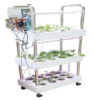 基于環境數據和用戶設定,系統能自動調節RGB植物燈光的強度、顏色和亮燈時長,控制水泵的灌溉量和頻率,以及風扇的換氣速度,模擬實現精細化的衣作物生長管理。