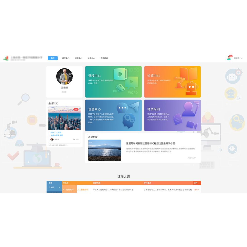 AI教育資源云平臺擁有豐富的AI課程,覆蓋中小學全學段,內容包括教案、課件、示范課視頻、課后測評以及其他資源。教師可以輕松使用AI教育資源云平臺進行備課和授課。AI教育資源云平臺提供專業的AI教學師資培訓資源,通過平臺可以實現完整的AI教師培訓流程。平臺實時更新最新的教培資源。AI教育資源云平臺允許賬號內教師上傳分享課件及其他教學資源并設立權限,實時協同管理專屬本校的AI教學資源庫。