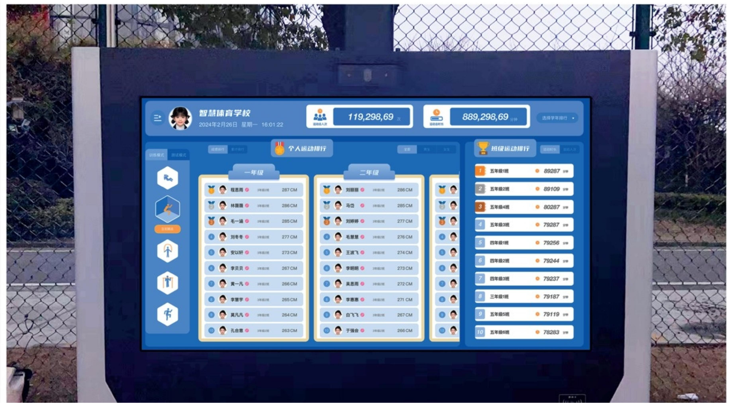 區(qū)級、校級體育大數(shù)據(jù)呈現(xiàn),校內(nèi)排行榜實時呈現(xiàn);學(xué)生自主成績查詢,個性化運動處方報告。